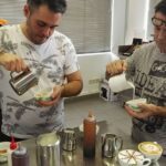 Les ofrecí una formación sobre los procesos del café desde la planta a la taza, pasado por el tueste, molienda, y finalizando con el protocolo de servicio para su elaboración final. En el bloque práctico, los alumnos aprendieron a elaborar un espresso perfecto, a emulsionar correctamente la leche, así como la técnica del vertido con dibujoTrabajamos y disfrutamos de todos estos procedimientos.